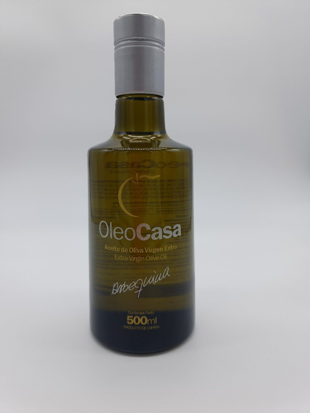 Aceite de Oliva Virgen Extra de Cosecha Temprana primera extracción en frío, procedente de aceituna de la variedad Arbequina. Cosecha 2021/2022. Aroma frutado intenso a plátano verde, seguido de olor a manzana, avellana y a hierba recién cortada. Dulce, con un ligero picante y sin amargor. Puro zumo de aceitunas verdes. Botella de cristal